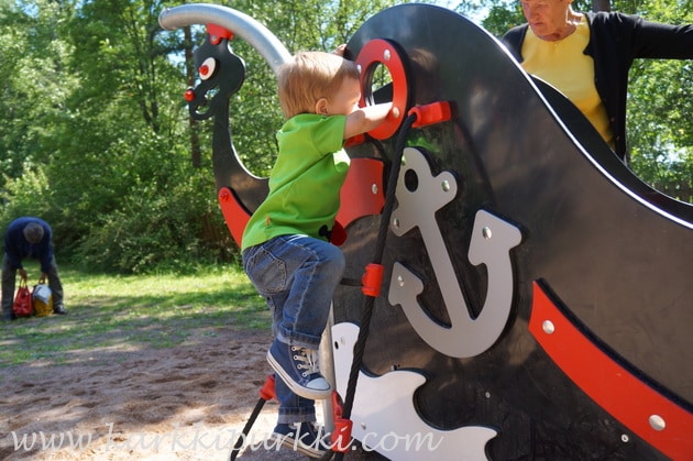 Koska seuraavan laivan lähtöön oli vielä tunti aikaa, lähdettiin me puuhailemaan leikkipuistoon. Ihan tosi hieno leikkipaikka Viikinsaareen oli tehtykin, monenmoista hienoa vempainta, ihan erilaisia kuin tutuissa puistoissa, joten tekemistä ja tutkimista riitti.