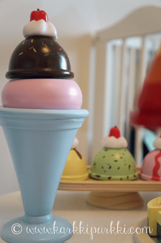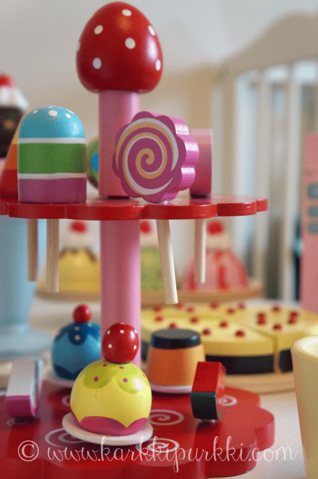 Onneksi näille keittiöleikeillekin löytyy vielä aikansa, nämä kun on niin syötävän suloisia, että äitikin touhuaa mielellään näiden parissa. Vaikka mukavaa puuhaa se junaradan rakentelukin on, mutta äitin mielestä olisi kiva leikkiä välillä jotain muutakin :D