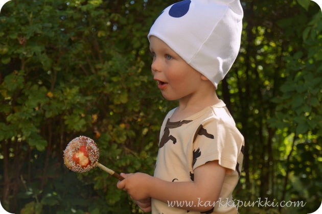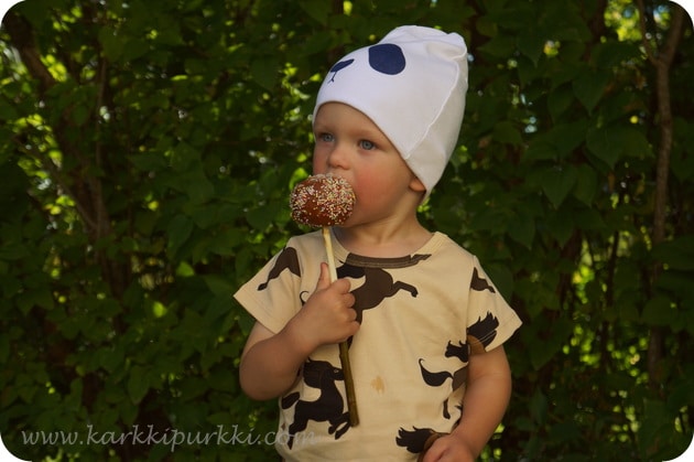 Tikkaripalkalla tietty. Ja löytyi äitin kassista kylmä kaakaokin, jota oli kiva siemailla sillä välin kun äippä kuvaili toppatakkia hellesäällä :D