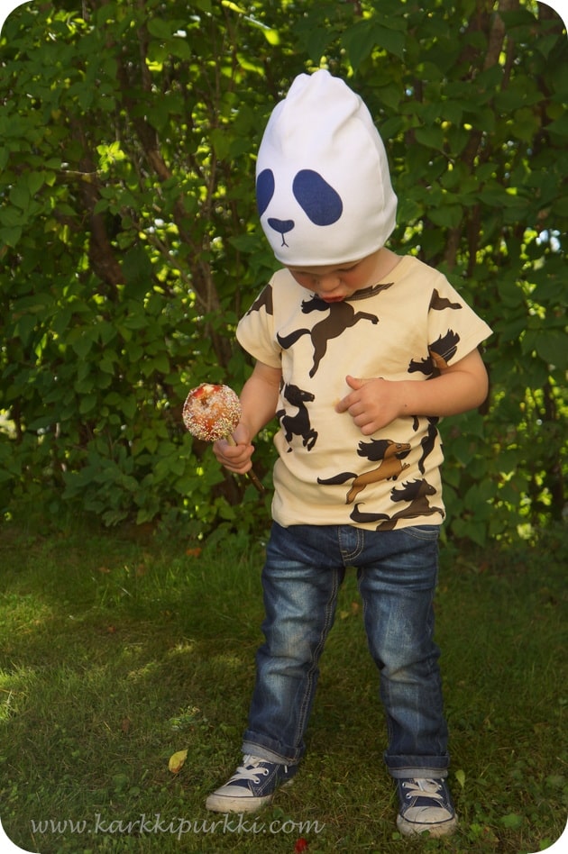 Mähän olin tietty ihan kärppänä koneen ääressä kun uudet Mini Rodinit tuli myyntiin, mutta en silti ennättänyt tilata meille tuota heppapaitaa pitkähihaisena. Mutta onneksi teepparista oli kokoa jäljellä, ihan yhtä kiva sekin on!