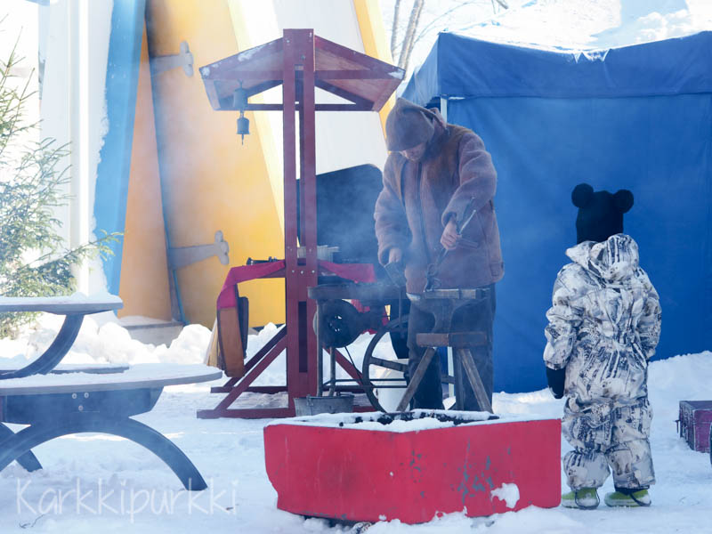 Koiramäessä ei ole varsinaisia huvipuistolaitteita hop lop -tyyppistä Drakkulan linnaa lukuunottamatta, mutta tekemistä sitäkin enemmän. Meillä vierähti Artturin ritarien talvijuhlissa monta tuntia, eikä me edes käyty seuraamassa vahakynttilöiden valmistamista, suunniteltu omaa vaakunaa tai soviteltu ritarien ja prinsessojen vaatteita, joita oli varattu yhteen huoneeseen. Ainakin tuommoiselle neljävuotiaalle Koiramäessä riittää kerta toisensa jälkeen ihmeteltävää ja tekemistä, ja taaperoikäisiä viihdyttävät ainakin Koiramäestä löytyvät kotieläimet.